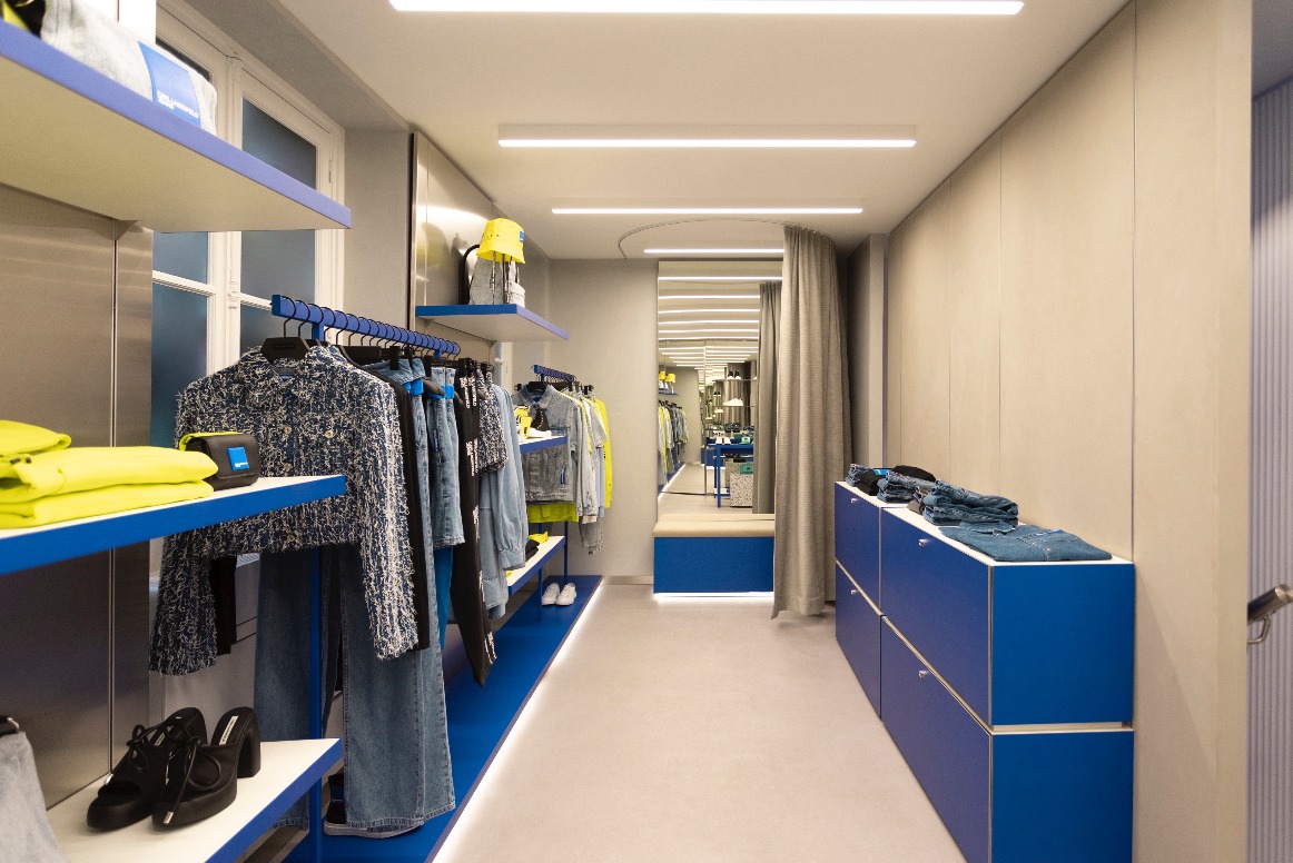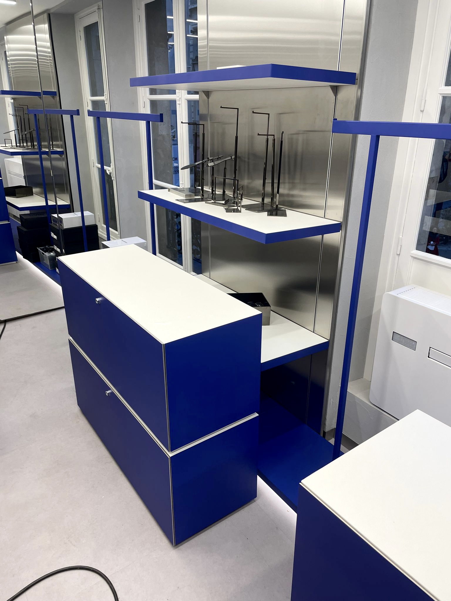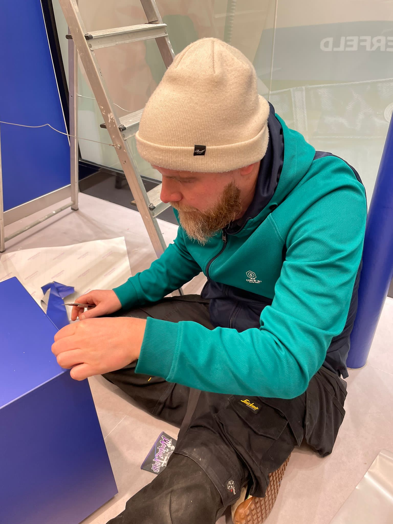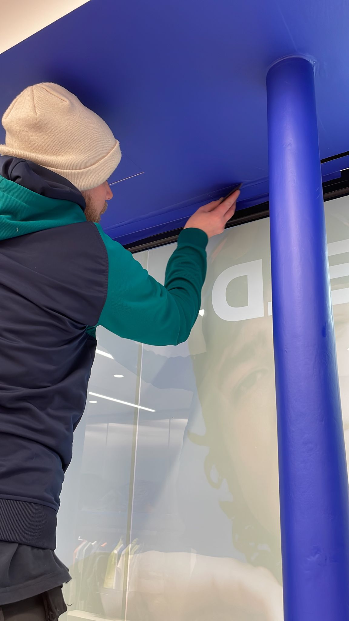 In de winkel hebben we op veel plekken blauwe folies toegepast, waardoor de hele ruimte een totaal nieuwe look krijgt. Daarnaast hebben we het logo van het merk verwerkt in onverlichte letters, zowel op de balie als op de gevel. Zo ontstaat een frisse, herkenbare uitstraling die de identiteit van de winkel direct versterkt.